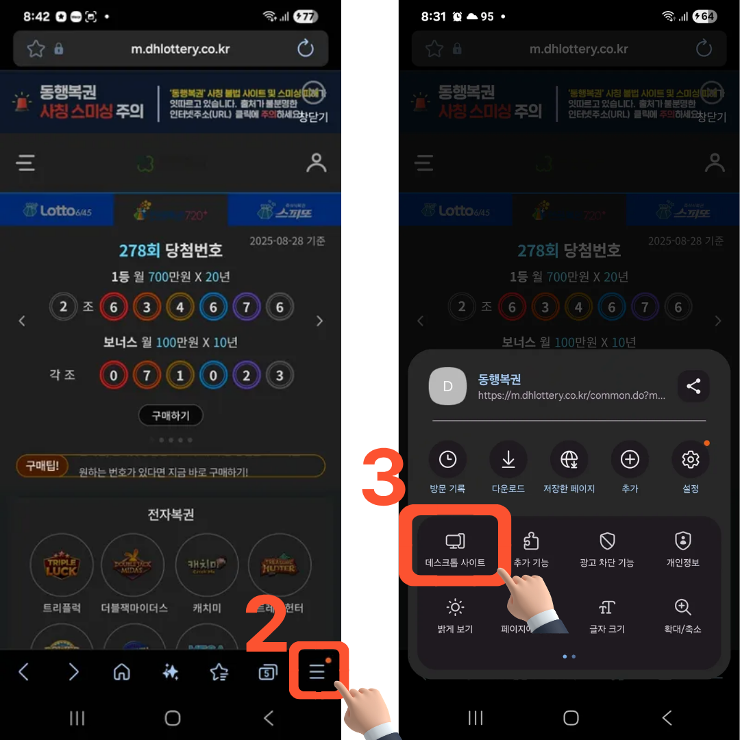 3. 안드로이드에서 동행복권 PC버전으로 접속해 구매하기